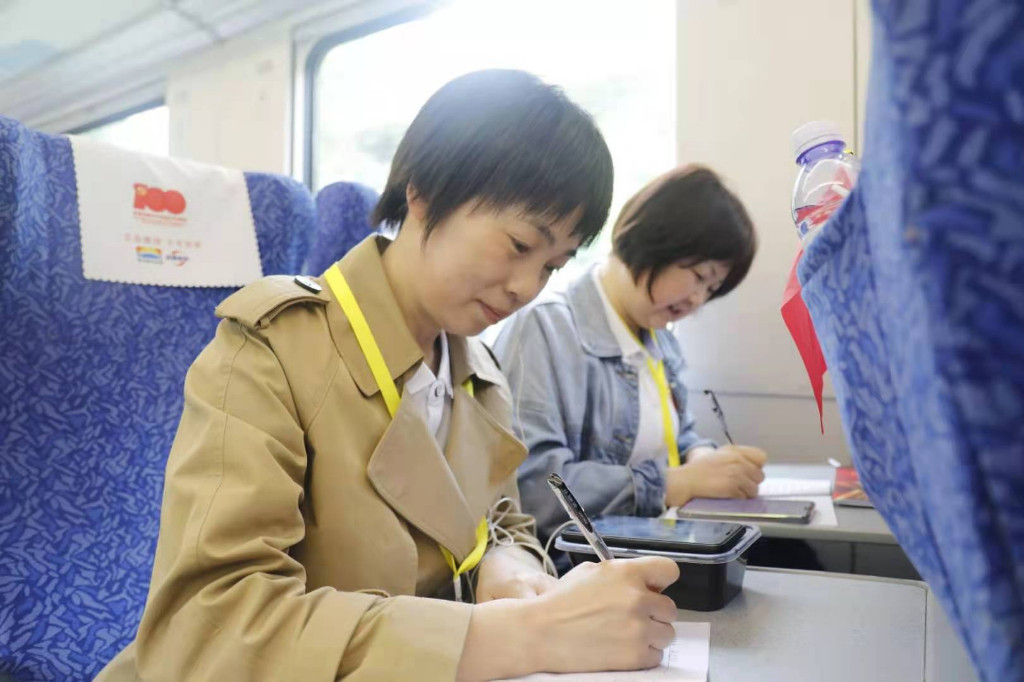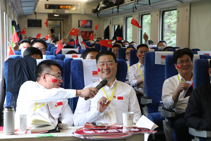 “‘七个一’的活动非常有现场感,很贴合党史主题。4个小时的移动课堂设计令人耳目一新,一路上既有趣又充实。”浙江宁波轨道交通集团培训学院党支部书记燕玲说,最令她感到暖心的是,当天列车上还有来自株洲市卫健委的几百名党员,专程来到车厢与他们互动交流,“我深深感受到株洲人民的热情,也很感谢组织方的用心良苦,让我们在浓浓的氛围中增长了见识、学到了知识。”