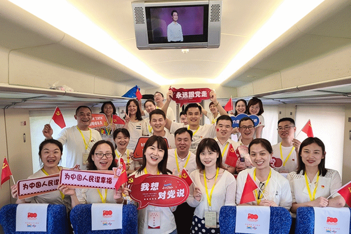 随着红色专列缓缓启动,党员们重温入党誓词、学习中共党史、聆听红色课堂、高唱红色歌曲、诵读红色经典……红色课堂有声有色,红色故事娓娓道来。
