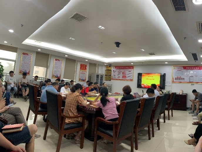 刘春雷传达学习了《关于在全市组织开展习近平总书记“七一”重要讲话精神宣讲工作的通知》,并进行了专题宣讲;支部副书记彭芝香领学了《中国共产党党徽党旗条例》;支部组织委员张蘅领学了《“献言党代会 共建新株洲”献智献策活动方案》。