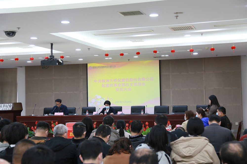 大会在庄严的《国歌》声中隆重开幕。会议通过了《天桥起重机事业部党总支委员会党员大会选举办法》和党总支委员会候选人名单。以无记名投票和差额选举的方式,选举刘春雷、李进、谭华成、唐国军、黎明五位同志为中共株洲天桥起重机股份有限公司起重机事业部总支委员会第一届委员会委员。黄建湘代表公司党委对党总支的成立表示祝贺,并对党总支工作提出了殷切期望和要求。