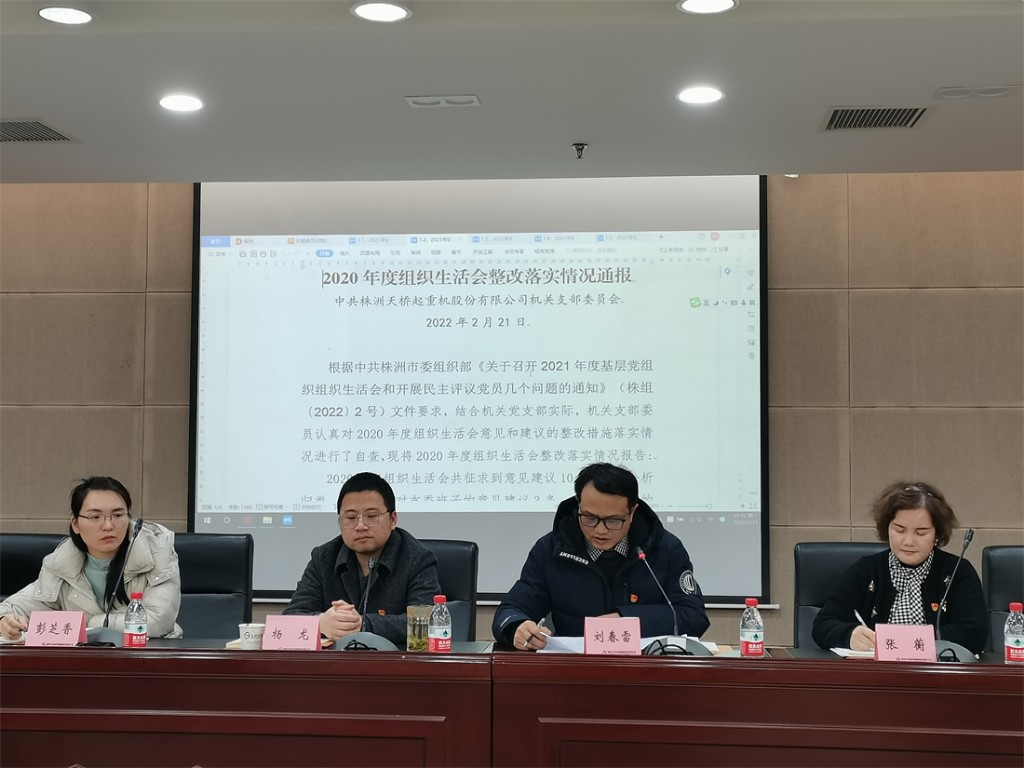 2月21日,市天桥起重机关党支部召开2021年度组织生活会。支部书记刘春雷主持会议,支部党员40余人参加会议。天桥起重党委委员、党群工作部部长杨龙,纪委委员、纪检监察室副主任彭芝香到会指导。