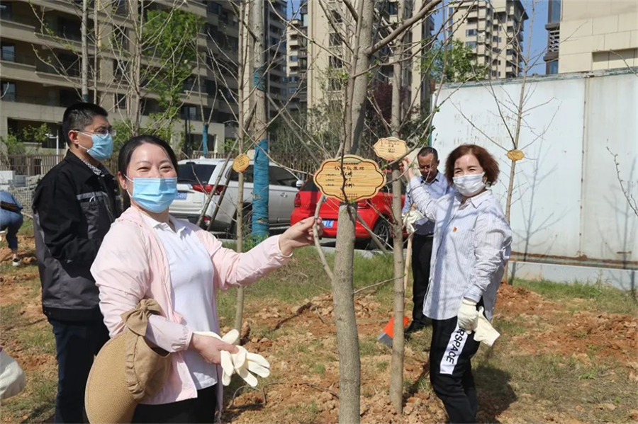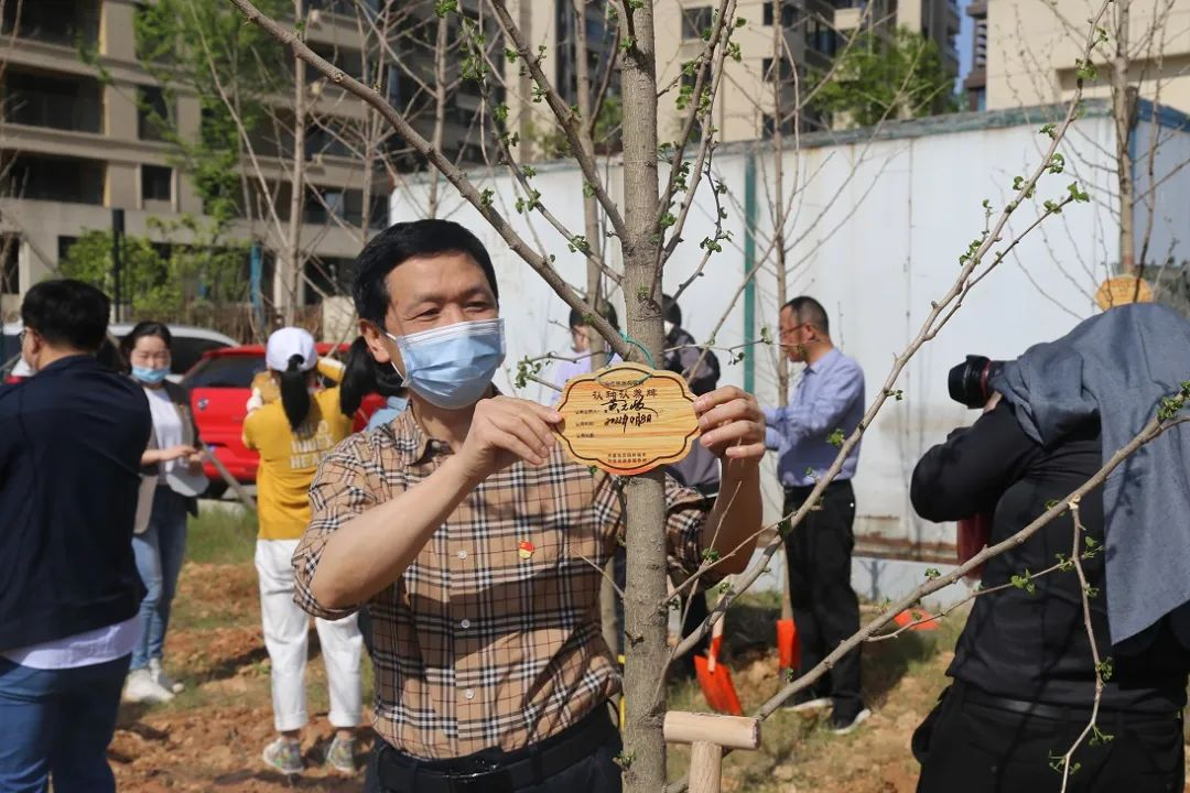 活动现场,大家挥锄抡铲、扶苗培土,干劲十足,很快,40多棵小树苗亭亭而立,绿色的希望被植入大地。看着自己的劳动成果,大家的脸上露出欣喜的笑容,纷纷在树苗上系上“认种认养牌”,留下名字,寄托心愿与祝福。