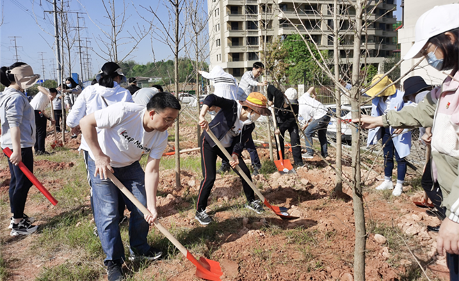 活动现场一派忙碌景象,大家鼓足干劲、分工合作、配合默契,或挥锄抡铲,或扶苗培土,将认购的32棵银杏树苗栽到千亿大道绿化堤段内,认真填好“我在株洲有棵树”认种认养牌,写下美好心愿,以实际行动为共建生态园林城市、共享宜居幸福株洲贡献力量。