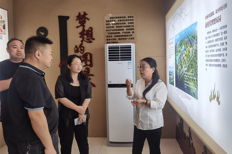 随后,实地参观了村部党建展览馆和“幸福屋场”,驻村工作队第一书记陈继红和村支书叶海涛详细介绍了孙家湾村发展历史、总体规划、建设布局及村企业发展等情况。双方就乡村规划以及乡村文旅、双碳产业等项目合作进行了沟通交流。(市资源集团)
