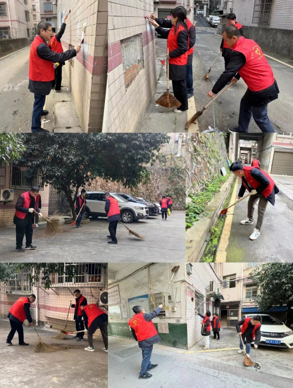 活动中,党员干部积极行动,分组合作,手里拿着笤帚、垃圾钳、垃圾袋等工具,对老旧小区内、花坛内的纸屑烟头、杂草等垃圾杂物进行整治清理,清扫卫生死角,清理墙壁上的“牛皮癣”小广告,大家充分发挥党员先锋模范作用,干得热火朝天,为社区居民营造干净整洁、宜居宜业的生活环境。