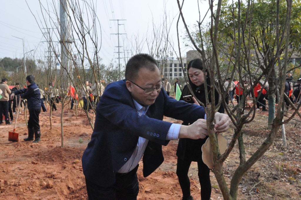 活动现场人头攒动,彩旗飘扬,党员志愿者有的挖土种树、有的挂认种认养牌、有的拍照留念,用实际行动营造“植绿、护绿、爱绿”的良好社会风尚。