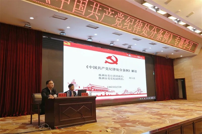 会议特邀市委党校原党史党建教研部主任、副教授刘玉盐对《中国共产党纪律处分条例》进行专题授课。与会人员还集中观看了警示教育片《初心与蜕变2023》。(市城发集团)