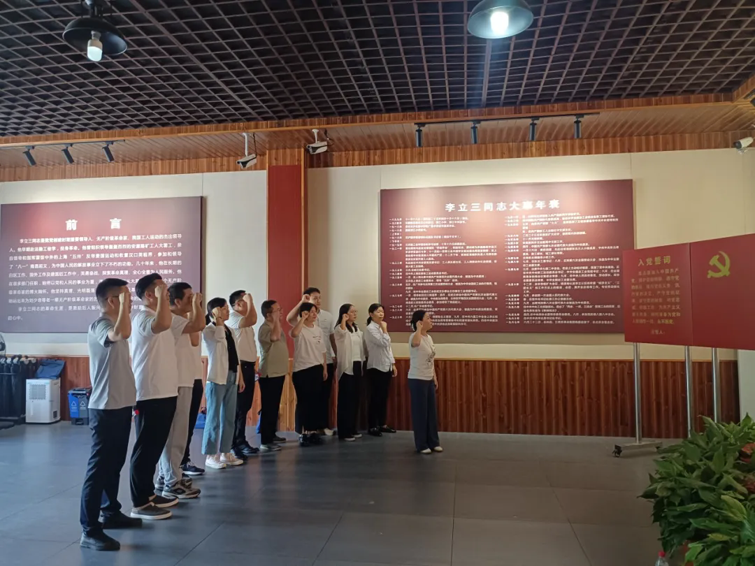 在李立三故居陈列馆,党员们重温入党誓词,通过认真听取工作人员的讲解、仔细观看每一件文物和图片,学习了李立三领导工人运动、积极投身无产阶级革命的光辉事迹。