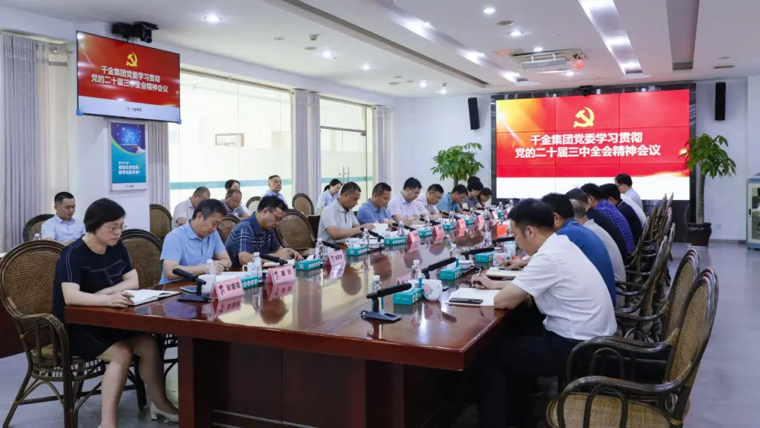 7月24日,千金集团党委召开专题会议,学习贯彻党的二十届三中全会精神。集团领导班子成员、子公司主要负责人、母公司全体中层正职参会。集团党委书记、董事长蹇顺主持并讲话。