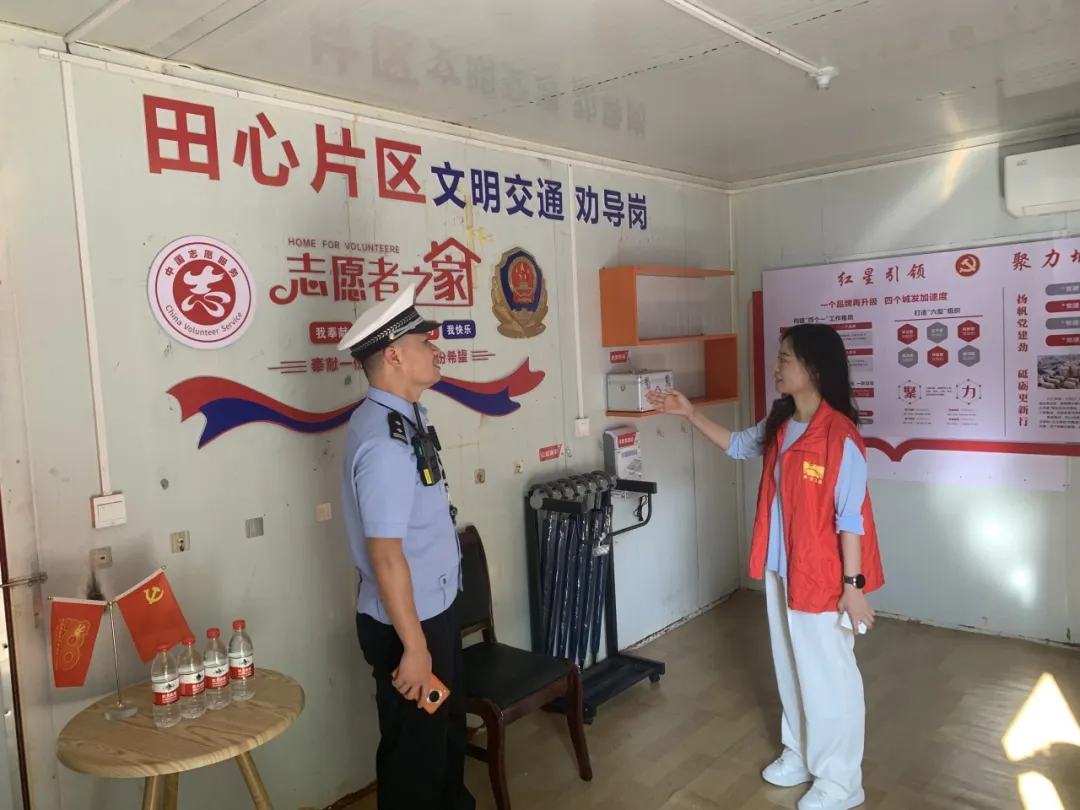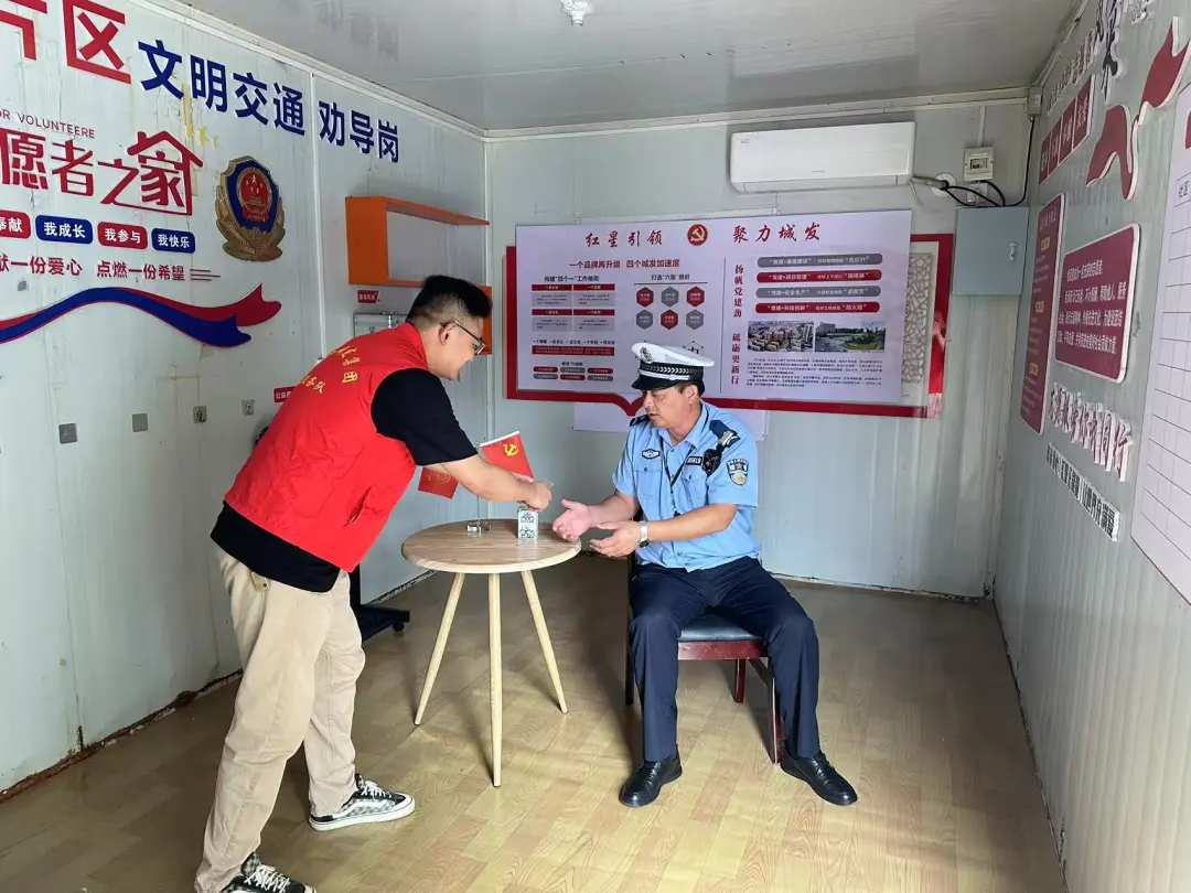 骄阳似火的酷暑中,当日的活动变成了一场浸润着温情的志愿服务如清泉流淌。党员志愿者将冰镇绿豆汤、防暑药品送到执勤交警手中,热情邀请他们到专属休憩区“充电”。交警大队黄警官指着墙上的 “执勤需求留言板” 说,“缺什么、需要什么,随时写下来,第二天准能解决。”这种 "点单式" 服务,让交警的 "辛苦指数" 转化为群众的 "安全指数"。
