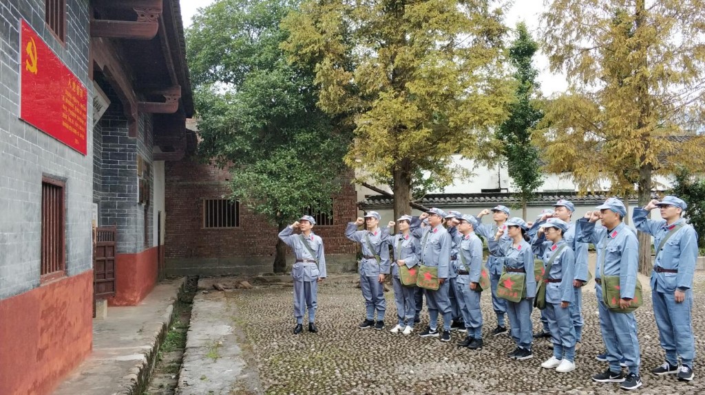 在第一次连队建党旧址叶家祠,由黄元政同志领誓,党员们重温了入党誓词。此外,党员们还参观了红军标语博物馆,第一次插牌分田地点中村八担丘,工农革命军第一师师部周家祠、第一师第一团团部洣泉书院。