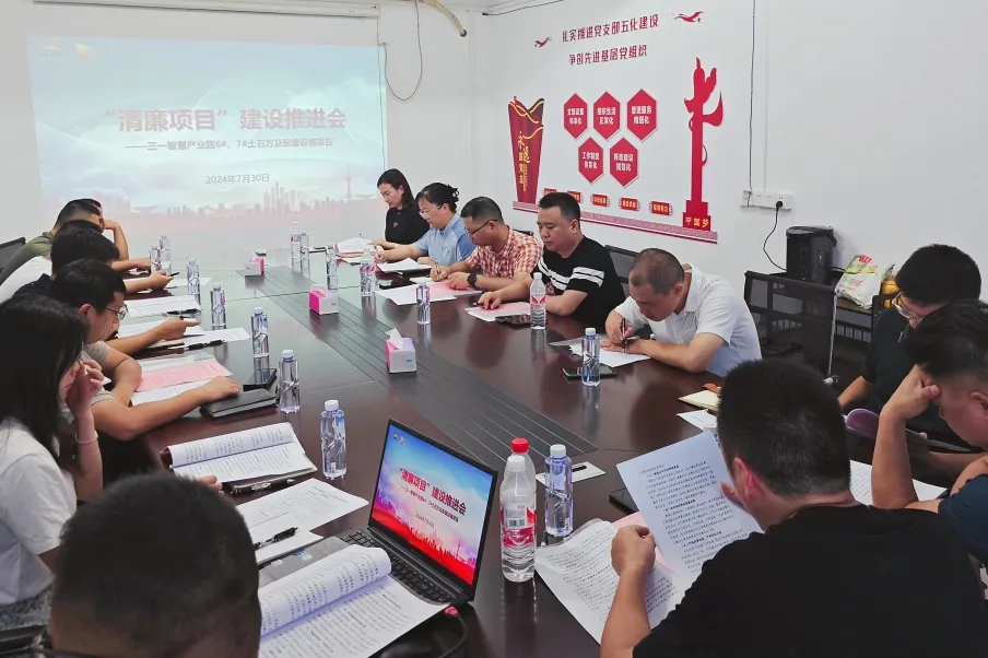 “清廉项目”建设推进会上,明确了“清廉项目”建设实施方案,生产安全部门提出生产安全与党风廉政深度融合的意见和建议,项目所属分公司经理详细介绍项目组织构架、成本管控、质安体系、廉洁保障措施等情况,项目负责人现场签订《清廉项目建设承诺书》。