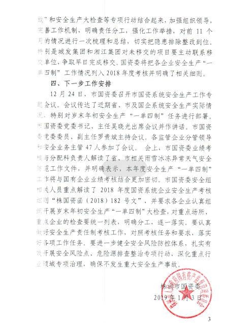 市国资委关于各企业1至12月安全生产管理一单四制工作情况的通报