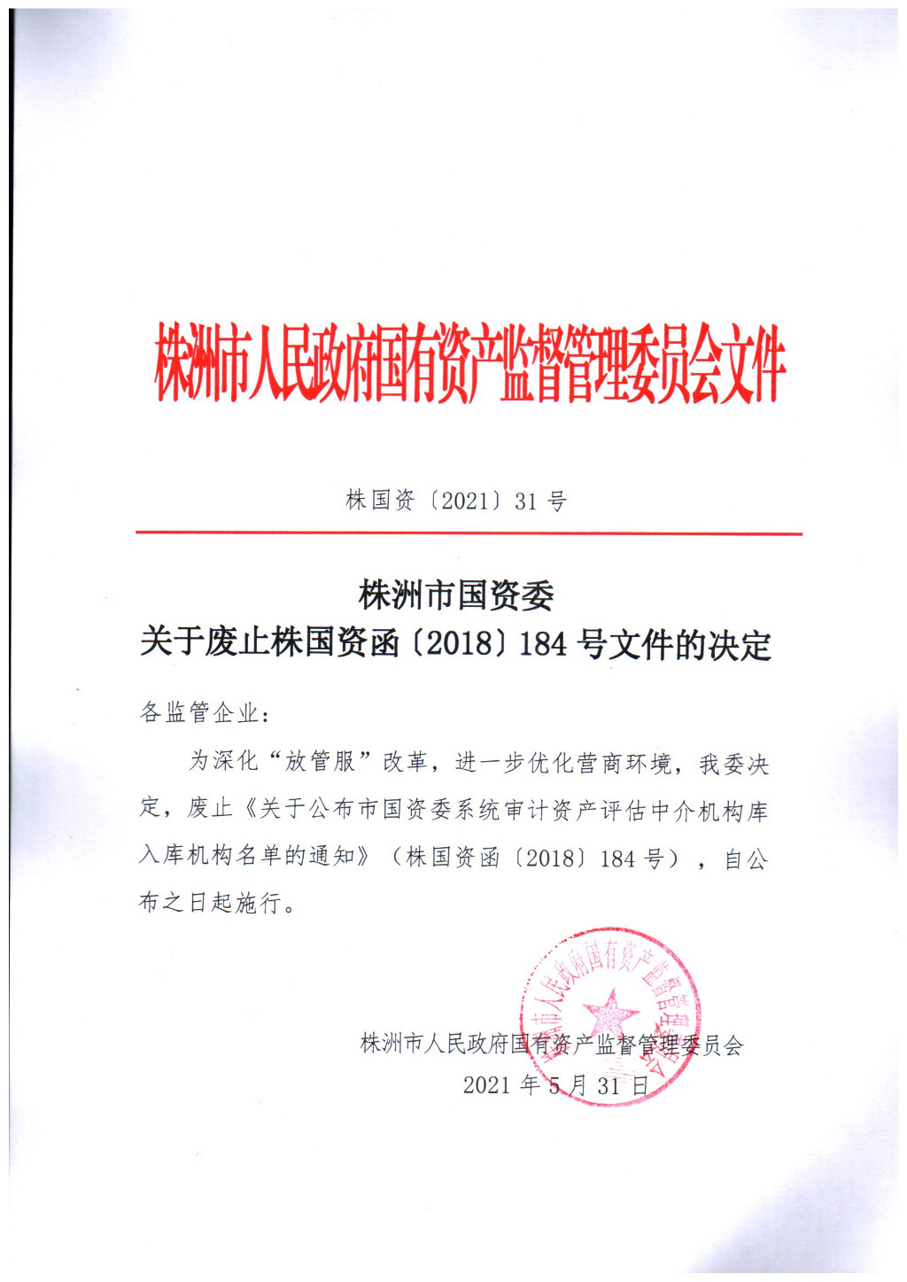 株洲市国资委关于废止株国资函〔2018〕184号文件的决定