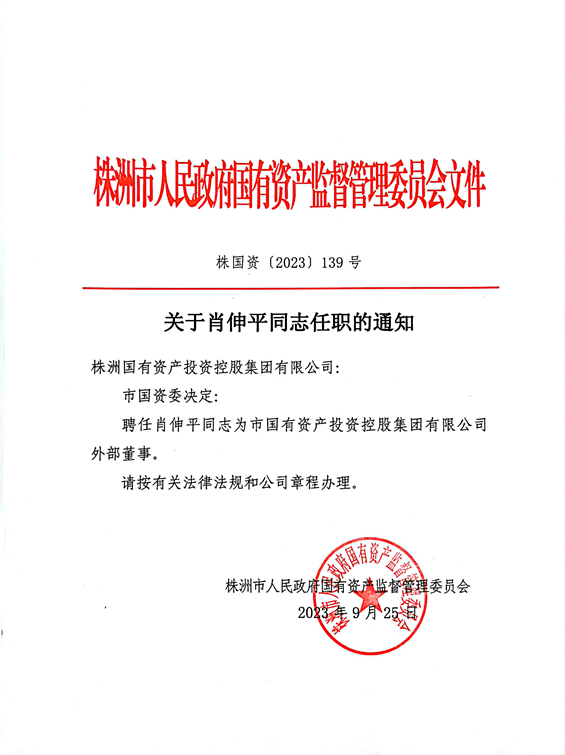 关于肖伸平同志任职的通知