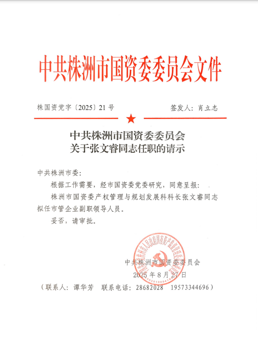 关于张文睿同志任职的请示