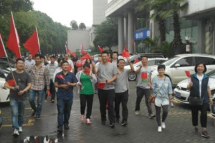 本次活动起点设在集团公司门口,参加活动的员工手拿“爱城发”小红旗,沿着沿江风光带步行至六桥再返程至集团公司,全程约8公里。后勤工作人员为更好地筹备此次活动,早上七点就到现场开始了紧张的忙碌,除了备好活动所需物品外,还在沿途设置两处取水点,保证活动参与人员的饮水供应;并派有专车沿途随行,以防意外发生。