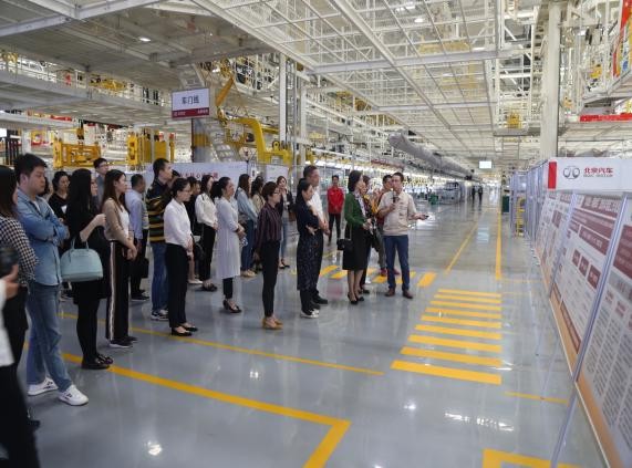 在讲解员的耐心讲解下,参观人员了解了北汽集团株洲分公司的发展里程、主要产品及今后发展方向;在党群工作部负责人的详细讲解下,参观人员熟悉了北汽集团株洲分公司党建工作思路、党建工作体系、党组织结对共建等党建工作开展情况,并深入车间参观学习。车间里,精心设置的总装党建小家、总装工匠小家、青年之家、共青团之家、幸福小家等支部党员活动阵地;生产线上,高高悬挂的党员先锋岗、党员示范岗,凸显了北汽集团株洲分公司党建引领作用。