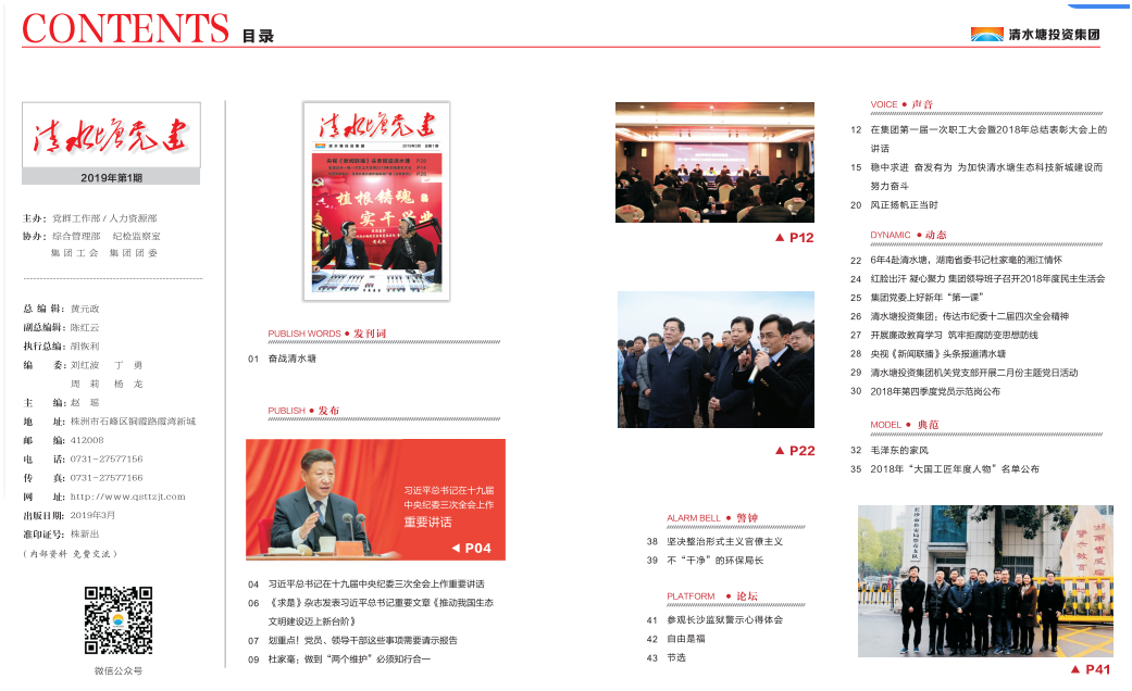 在这阳光明媚的四月,由清水塘投资集团党委主管,公司党群工作部/人力资源部主办的思想政治类刊物《清水塘党建》正式出版发行。