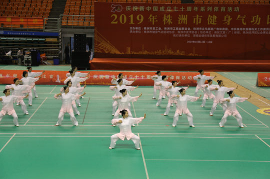 为庆祝新中国成立七十周年,株洲市总工会于10月12日、13日在河西体育中心羽毛球馆举行全市健身气功比赛,天桥起重公司党委副书记、工会主席蒋笑波同志率队惊艳亮相,在30支代表队中脱颖而出,荣获健身气功八段锦项目企业社区工商联组二等奖。