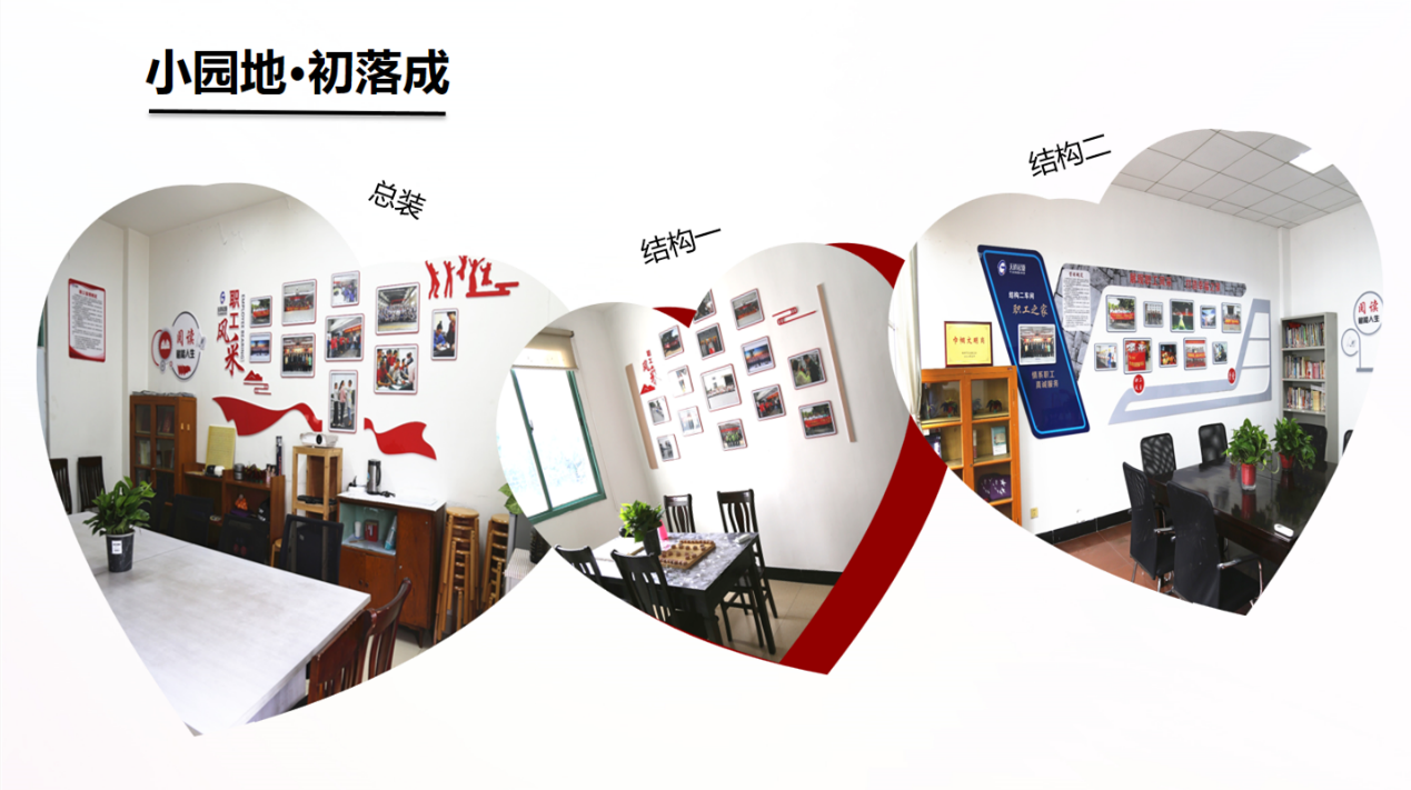由于一线办公场地空间有限,且三个车间各自有不同的情况特性,通过征求其所属分工会主席和员工的意见,公司工会于6月上旬形成了基本的方案:以服务职工为出发点,综合考虑学习、文娱、健身等微要素,辅以逐年完善的形式,建立车间小园地。