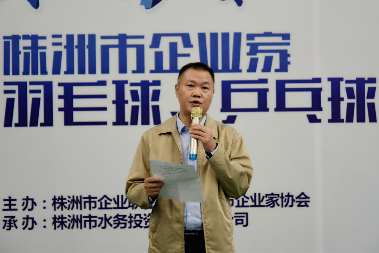 市企业联合会、企业家协会副会长、水务集团党委书记、董事长谢锦辉同志致辞。他代表水务集团对各位企业家的到来表示最热烈的欢迎,感谢各位朋友对水务集团的关心支持,希望健身联谊赛使大家交流球技、收获友谊、收获快乐!在裁判宣读比赛规则后,市工信局党组副书记、副局长刘日炎讲话,并宣布“水务杯”2020株洲市企业家羽毛球、乒乓球联谊赛正式开始。
