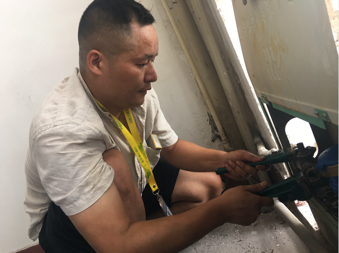 “关闭主干管闸门止水,虽然更省事,但会导致停水范围扩大,影响附近居民和企业的生活生产,最好的办法就是只关掉撞断的消防栓梯口阀。”李钟知道闸门就在离消防栓大概一米处的井盖下,但半米粗、4米高的水柱早已让路面“水满为患”,此地又正处于唐人神厂区大门口,人来车往极为不便。路面满是积水,眼下正是初春时节,水还透着冬天的凉。在几次冒水尝试关闭阀门失败后,李钟当机立断,请求集团闸门班协助短时间关停主干阀门。水势稍缓之后,他顾不得水柱“啪啪打脸”,尝试徒手找到井盖,在闸门班人员的协助下成功找到并关闭了消防梯口阀。