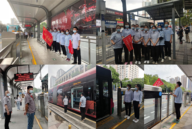 会议结束后,青年突击队12个小组按计划分赴各个公交快速廊道内,开展“助力智轨 我们正青春”护站活动,倡导市民走斑马线进出公交快速廊道;引导市民排队刷公交卡或手机乘车码进入站内;维护站内乘车秩序和安全;倡导市民绿色、低碳出行。