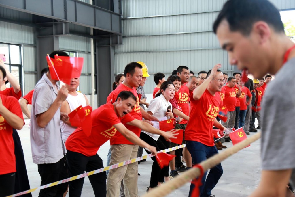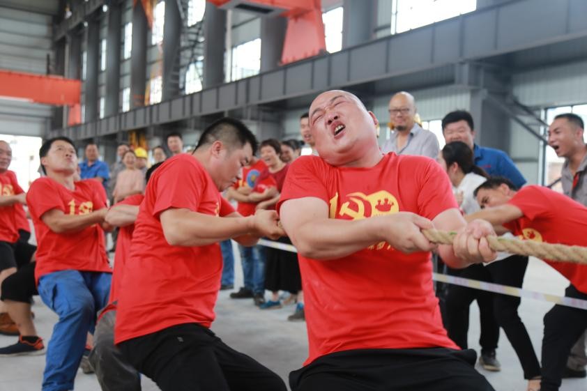 7月9日,市天桥起重举行“建党百年·携手奋进”2021拔河比赛。