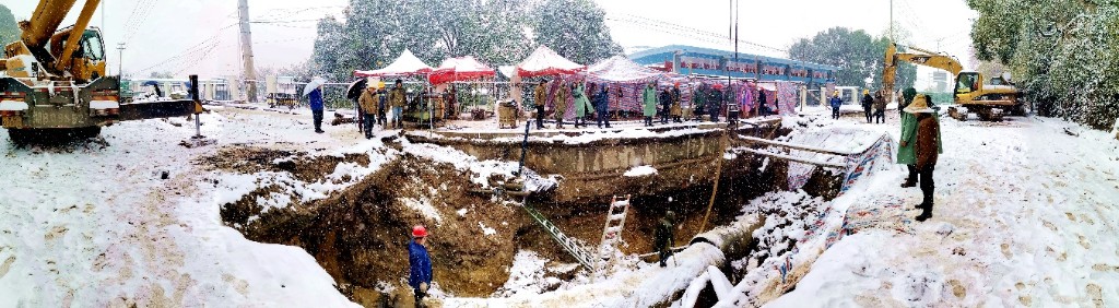 经过28小时的雨雪奋战,他们用冻得通红的双手完成了最后的水泥封口作业,DN1200上山管正式试水。
