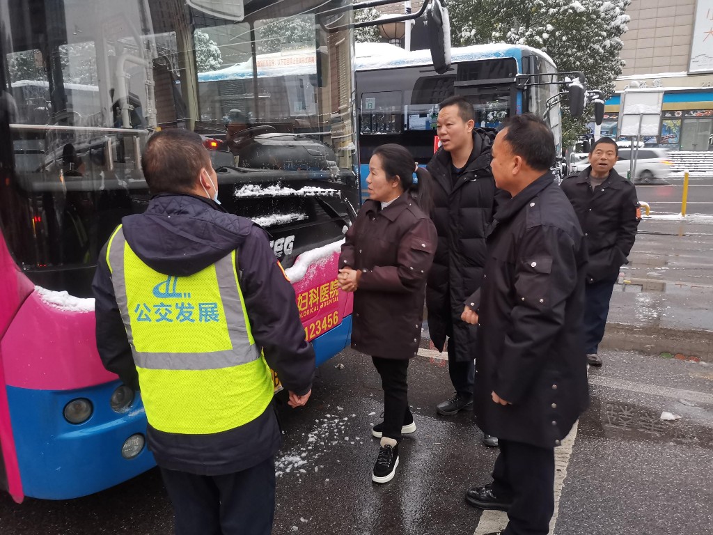 根据26日的营运情况和适时的天气预报,12月27日在首班车发车前,公交发展公司技术部、安全服务部及各营运部门相关人员奔赴一线,配合做好发车前的准备工作;为确保线路营运正常,该公司领导到各主要站点现场指挥运调,转运和发放应急物资;及时对村镇公交、智轨廊道相关线路的路面运行情况进行勘查,对变化情况适时反馈;修理厂安排应急抢修车辆随时待命;对车辆外部、车厢车门、快速廊道站台、首末站场等重点位置和区域进行除雪、撒盐等防灾减灾工作;对各主要桥梁、重点路段进行实地安全踏勘和路面通行情况的跟踪反馈;加强车辆“三检”及安全行车提示等工作;进一步优化了夜间车辆充电的安排调度;妥善回复乘客咨询与投诉……