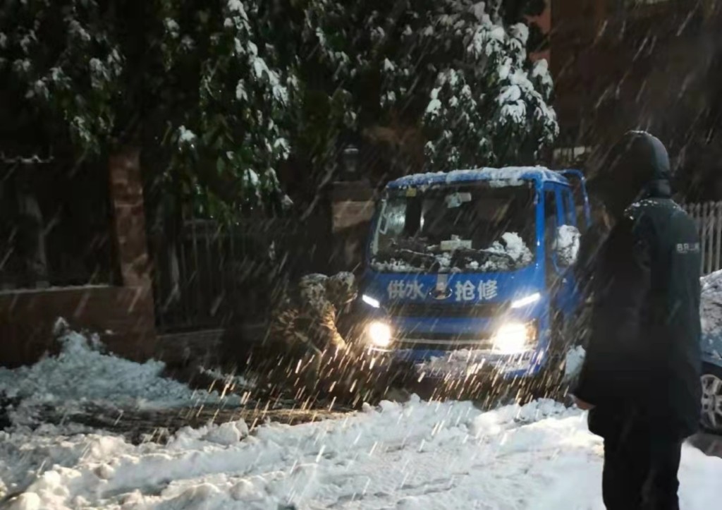 雪夜里,市民家中用水有任何疑问和困难,都有客服人员的温暖倾听和回复;还有100多名维修人员坚守一线,及时响应抢维修需求,保障抢维修速度。