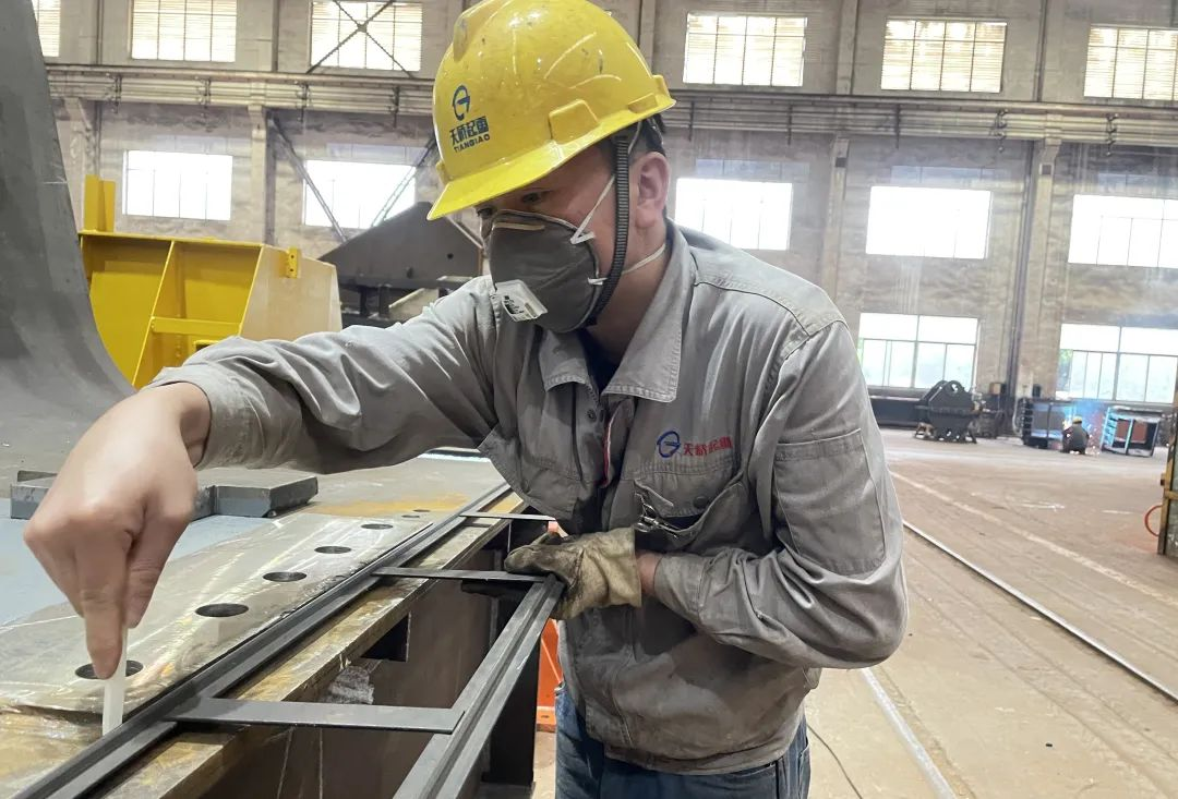 2021年,在该公司水钢项目中,唐庆班组被安排加工桥架、主机部分。接受任务时,唐庆正因脚踝受伤在家休养。接到任务后,他立即对班组人员作出安排,并对关键环节进行叮嘱。