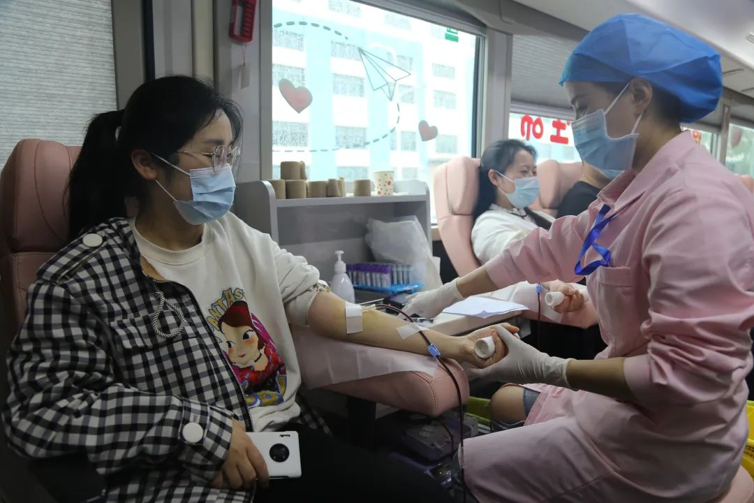 ▲献血车上,献血的同志们分享着为国家公益事业作出贡献的喜悦,他们期盼着用自己的热血点燃生命的希望,用涓涓爱心为社会贡献一份力量。