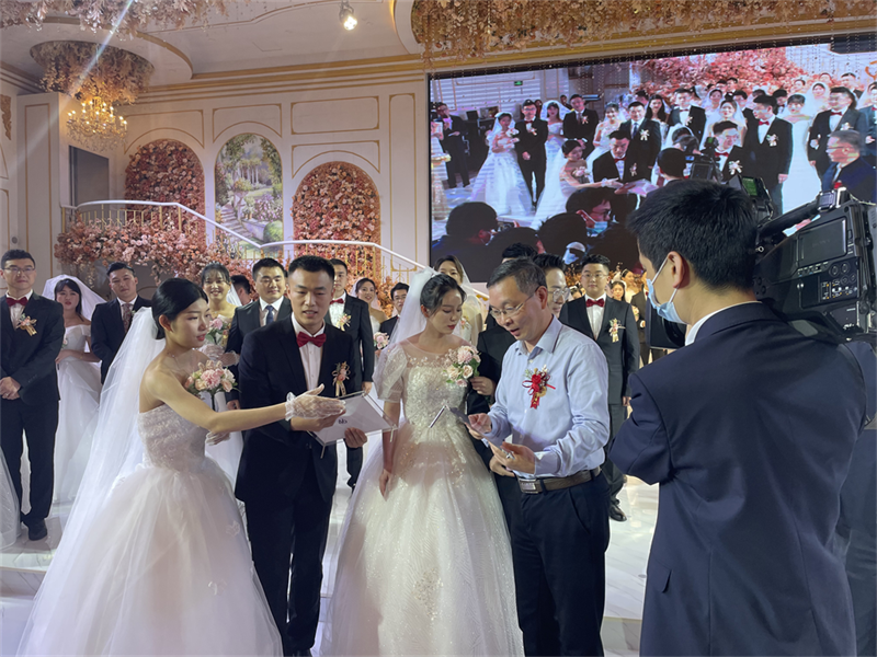 5月20日上午,由中共株洲市委、株洲市人民政府主办,市委组织部、共青团株洲市委承办的“株洲@你,幸福向未来”2022株洲首届青年人才集体婚礼盛大举行。市委书记曹慧泉,市委副书记、市长陈恢清为新人证婚。一场浪漫而有仪式感的集体婚礼在这座充满爱的城市拉开序幕。