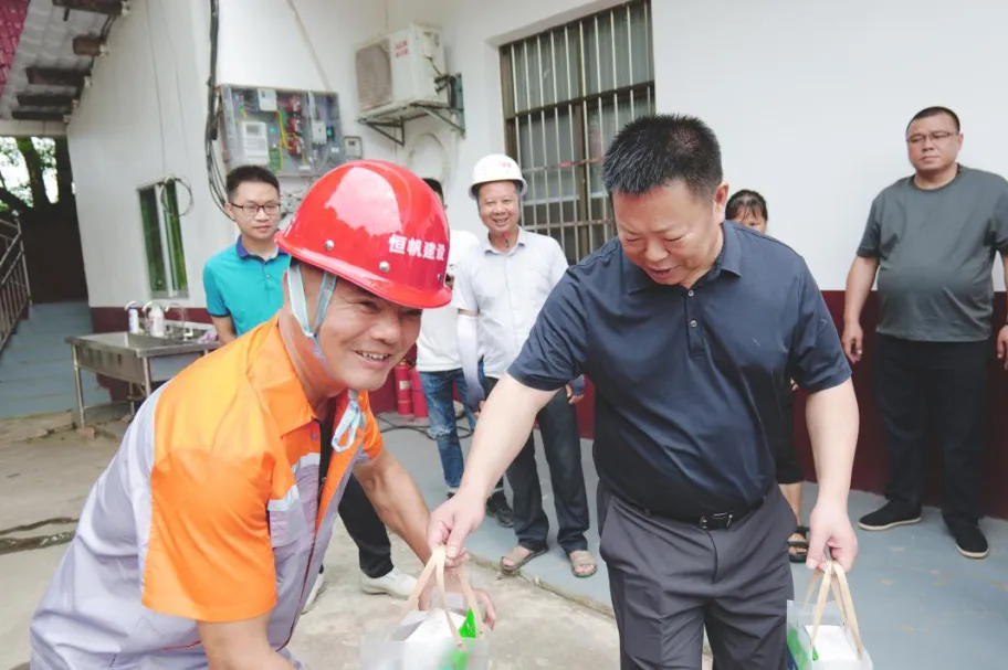 何应平、孙昕一行为一线员工送上凉茶、绿豆、花露水等防暑物资,对大家为项目高质量发展作出的积极贡献表示衷心感谢。同时,要求各子公司要切实做好安全生产工作,确保员工健康与生产顺利进行。