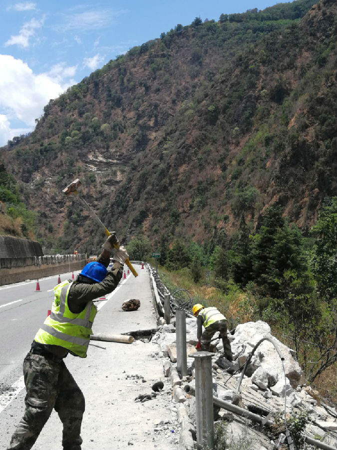 “现在,道路双向已恢复通行,我们正在加紧处置受损的路面、路堤和交安机电,全力以赴保障大动脉畅通。” 23日中午,在大保高速K2586路基处置施工现场,云南省交投集团相关负责人介绍,5月21日21时48分,云南大理漾濞县6.4级地震发生以来,余震不断而且密集,短时间内已达数百起,引发山体落石,导致云南省交投集团运营管理的大保高速双向K2593-K2580路段道路及沿线交安设施均出现不同程度损坏,其中道路损坏严重共计3处,路基挡墙损坏严重1处,阻断交通。